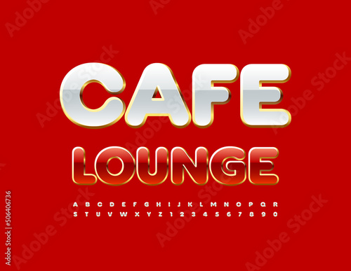 Vector luxury sign Cafe Lounge. Red and Gold shiny Font. Premium Alphabet Letters and Numbers set