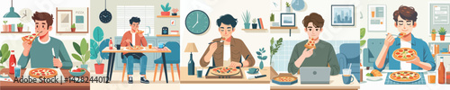vector man eating pizza at table