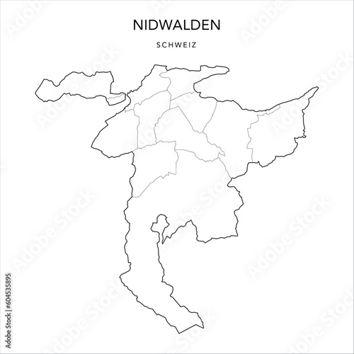Vector Map of the Canton of Nidwald (Nidwalden) with the Administrative Borders of Municipalities (Gemeinde) as of 2023 - Switzerland (Schweitz)
