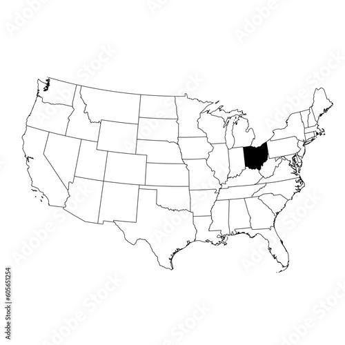 Vector map of the state of Ohio highlighted in black on the map of the United States of America.