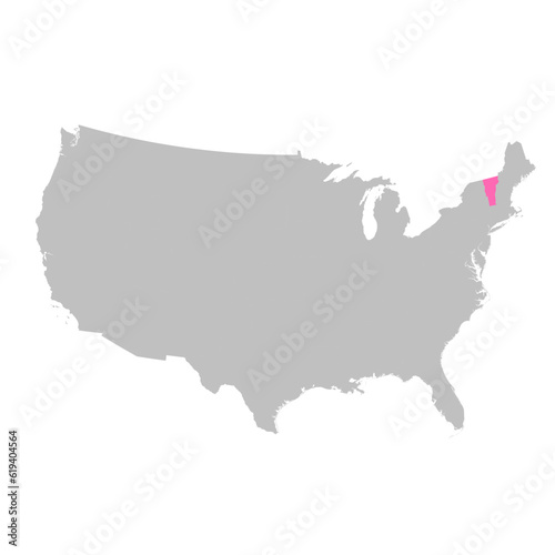 Vector map of the state of Vermont highlighted highlighted in bright pink on a map of United States of America.