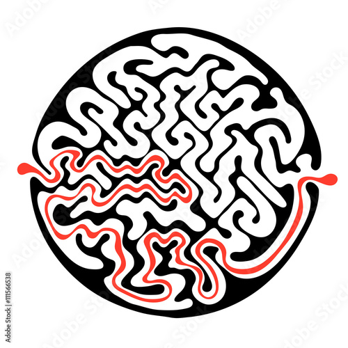 Vector maze, round labyrinth illustration with solution.