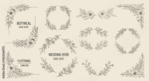 Vector Minimalist Botanical SVG Illustration Set with Floral Wreaths and Herb Motifs in Line Art Style for Elegant Natural Design