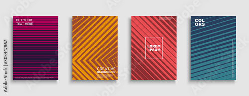 Vector minimalistic abstract contemporary templates. Colorful gradient striped covers - trendy geometric vibrant design