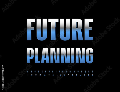 Vector modern concept Future Planning. Trendy Metallic Font. Steel Alphabet Letters and Numbers set.
