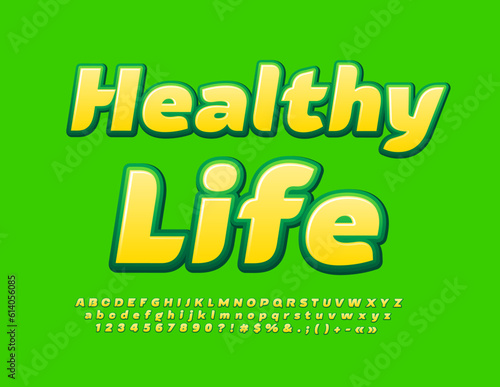 Vector modern poster Healthy Life. Bright glossy Font. Stylish Alphabet Letters with Shadow.