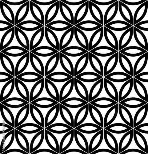 Vector modern seamless pattern flower of life,black and white textile print,stylish background sacred geometry,, abstract texture, monochrome fashion design, bed