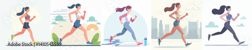 Vector of a woman using a treadmill.