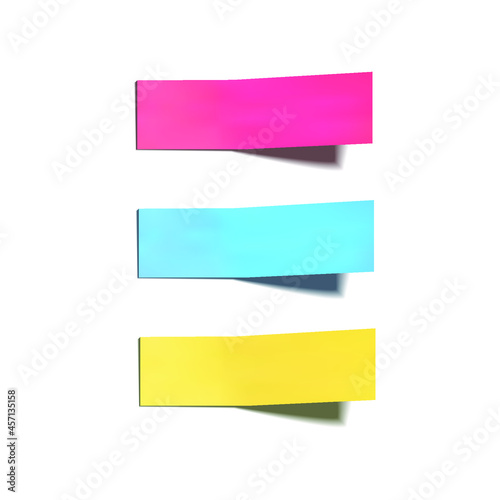 Vector Pastel Color Papers Sticker Isolated on White Background with Shadow, Light Pink, Blue and Yellow Colors, Sticky Notes, Memo Sticker.