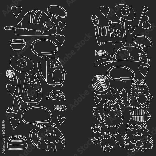 Vector pattern with cute little cats and kittens for children.