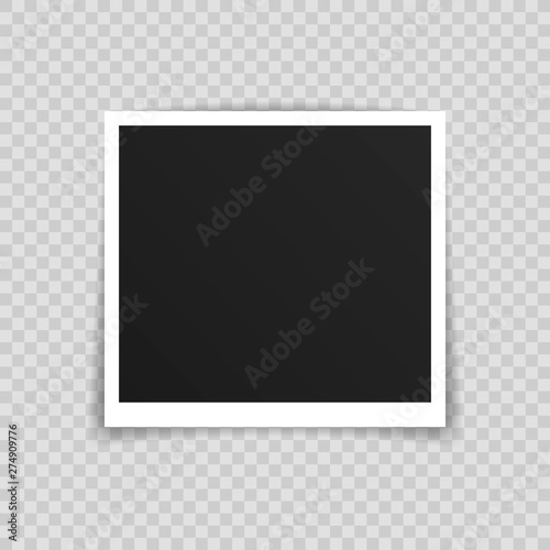 Vector Photo frame mockup design. Photo frame on sticky tape isolated on transparent background. Vector illustration
