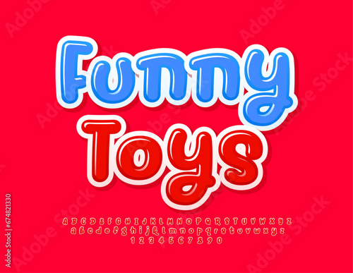 Vector playful Emblem Funny Toys. Funny Glossy Font. Bright Alphabet Letters, Numbers and Symbols