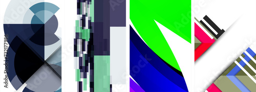 Vector posters - minimalist geometric abstract backgrounds, featuring circles, lines, and triangles in clean, modern design
