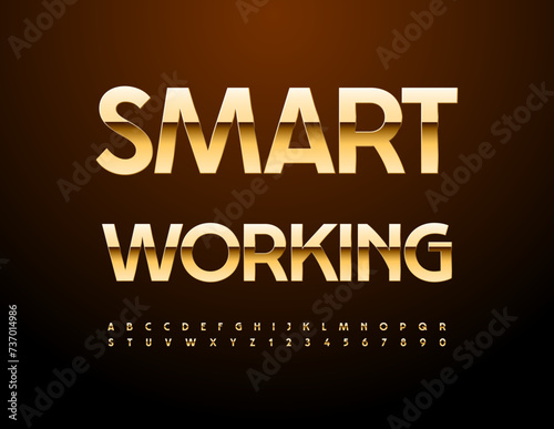 Vector premium template Smart Working. Cool Gold Font. Modern Elite Alphabet Letters and Numbers set.