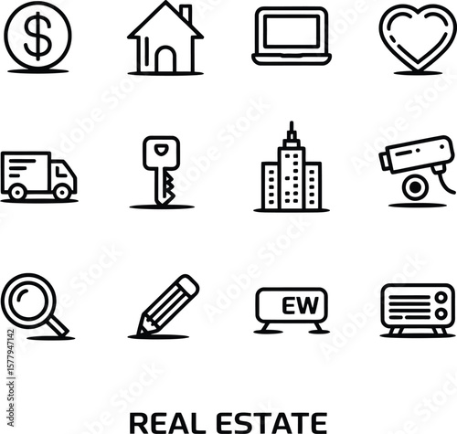 Vector Real Estate & Property Outline Icons: Essential Symbols for Housing, Sales, and Related Concepts.