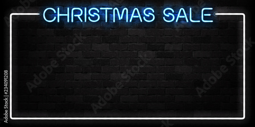 Vector realistic isolated neon sign of Christmas Sale frame logo for decoration and covering on the wall background. Concept of Happy New Year.