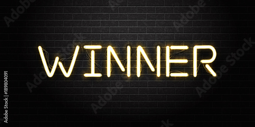 Vector realistic isolated neon sign of Winner lettering for decoration and covering on the wall background. Concept of casino winning, award ceremony and jackpot.