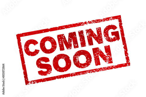 Vector realistic isolated red rubber stamp of "Coming Soon" logo for template decoration and layout covering on the white background isolated PNG