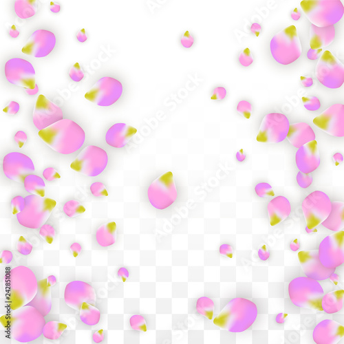 Vector Realistic Pink Petals Falling on Transparent Background. Spring Romantic Flowers Illustration. Flying Petals. Sakura Spa Design. Blossom Confetti.