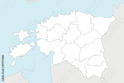 Vector regional blank map of Estonia with counties and administrative divisions, and neighbouring countries and territories. Editable and clearly labeled layers.