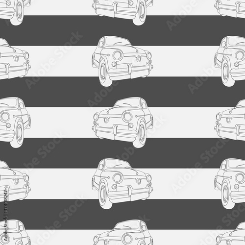 Vector retro car seamless pattern. Black and white illustration for design, paper, textile.