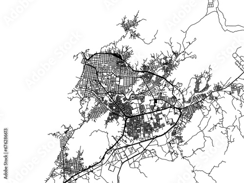 Vector road map of the city of Santa Marta in Colombia with black roads on a white background.