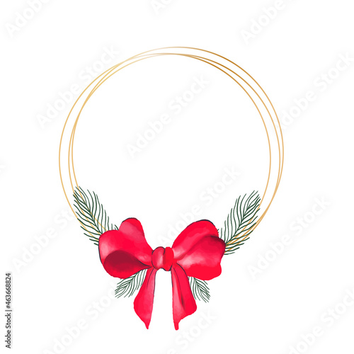 Vector round Christmas wreath with with winter flowers isolated on white.