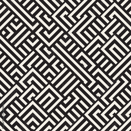 Vector Seamless Black and White Diagonal Maze Lines Geometric Pattern