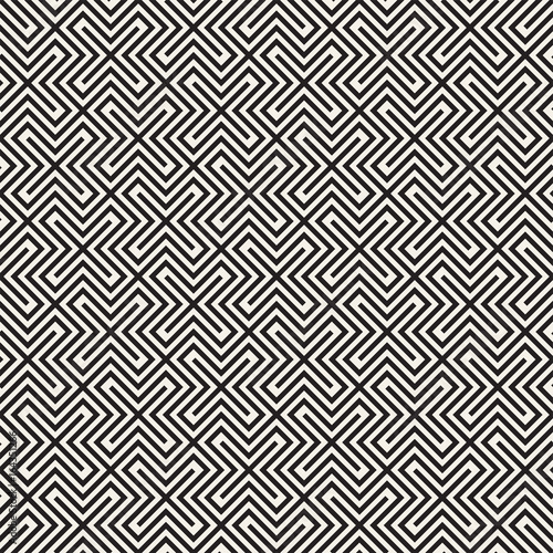 Vector Seamless Black And White Lines Pattern Abstract Background. Cross Shapes Geometric Tiling Ornament.