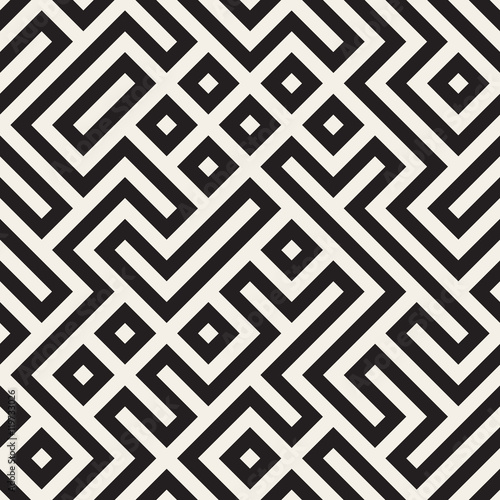 Vector Seamless Black And White Maze Lines Geometric Pattern