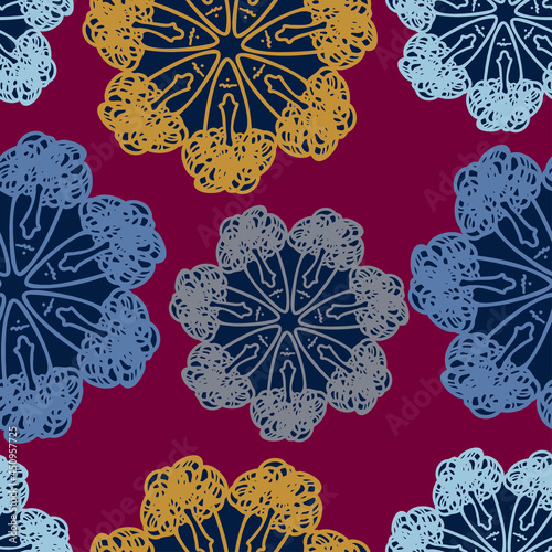 Vector seamless colorful design pattern botanical cute spring herbs and flowers in dark tones