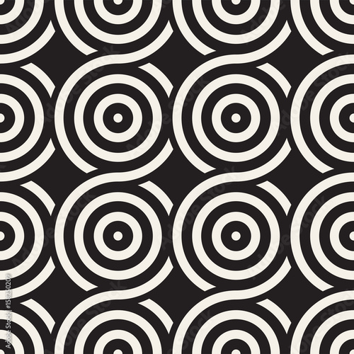 Vector seamless geometric pattern composed with circles and lines. Modern stylish rounded stripes texture. Repeating abstract background