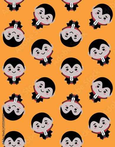 Vector seamless pattern of flat cute vampire isolated on orange background