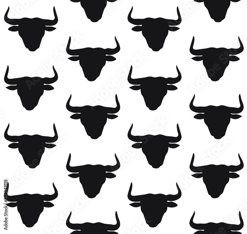 Vector seamless pattern of hand drawn bull face head silhouette isolated on white background
