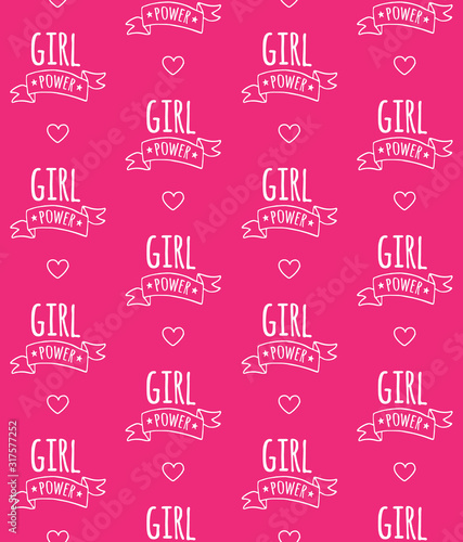 Vector seamless pattern of hand drawn doodle sketch girl power lettering isolated on pink background