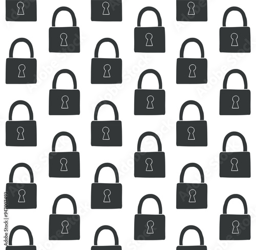Vector seamless pattern of hand drawn sketch doodle lock isolated on white background