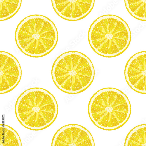 Vector seamless pattern of lemon slice. Realistic citrus background