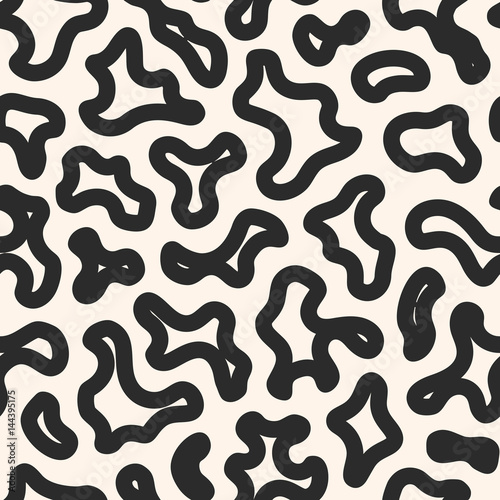 Vector seamless pattern with abstract spots. Black & white texture with big curved patches. Monochrome camouflage illustration. Repeat background. Design for prints, decor, covers, textile, clothes