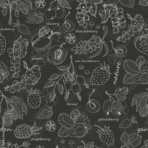 Vector seamless pattern with berries on dark background