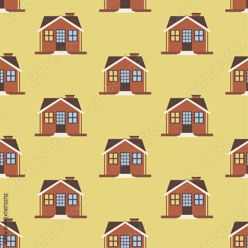 Vector seamless pattern with cute houses in cartoon style.