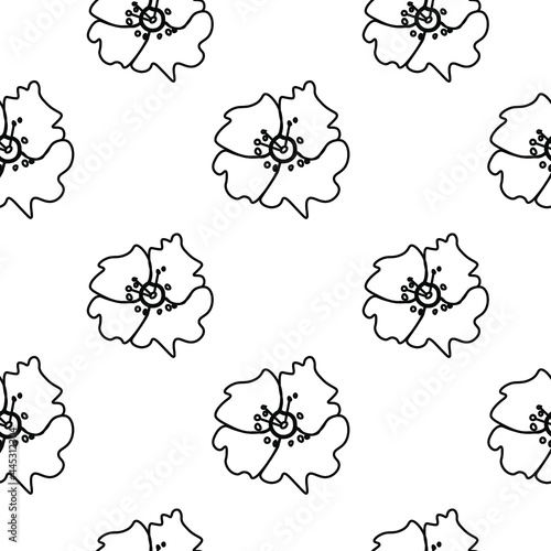 Vector seamless pattern with flowers on white isolated hand drawn background.Botanical,Spring,Summer doodle style black line print.Designs for textiles,fabic,wrapping paper,packaging,web,invitations.