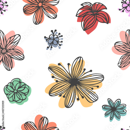 Vector seamless pattern with hand drawn flowers. Beautiful design for textile, wallpaper, wrapping paper.