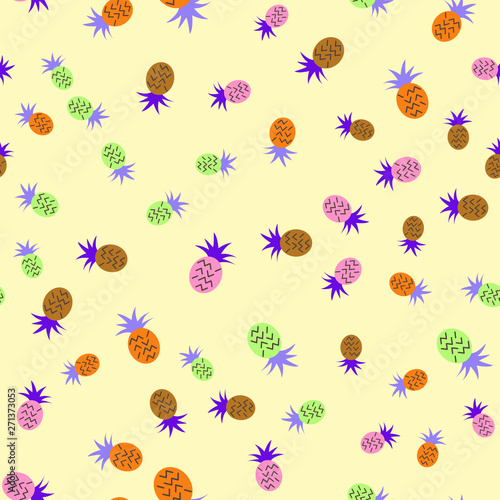 Vector seamless pattern with pineapples. Tropical Summer fruit