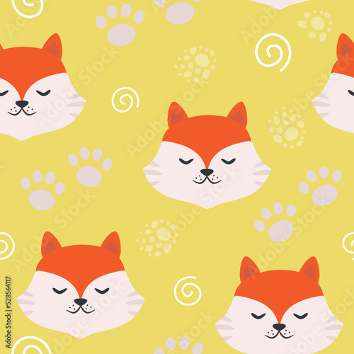 Vector seamless pattern with red fox in cartoon style