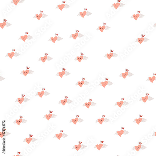 Vector seamless pattern with small red hearts on white backdrop. Valentines day background. Abstract geometric texture, repeat tiles. Love romantic theme. Minimal design for decor, textile, gift paper