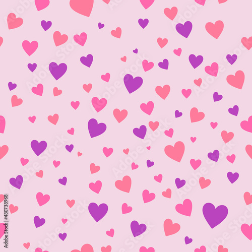 Vector seamless pink background with hearts for Valentine's Day