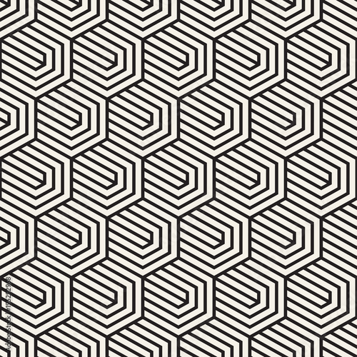 Vector seamless stripes pattern. Modern stylish texture with monochrome trellis. Repeating geometric hexagonal grid. Simple lattice design.