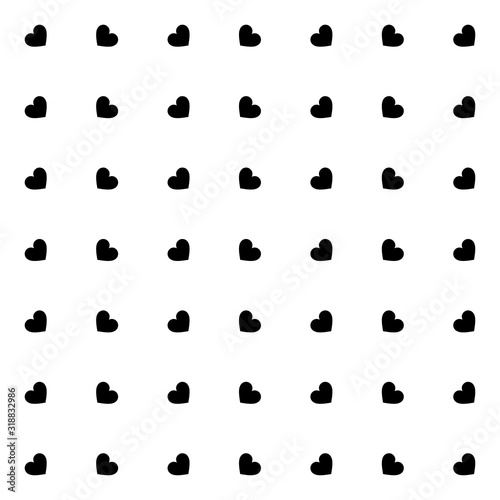 Vector seamless texture. White background and black hearts. Repeatable pattern