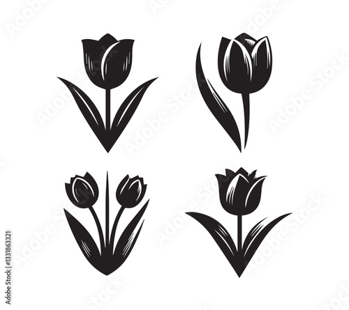 Vector Set of Black and White Tulip Illustrations