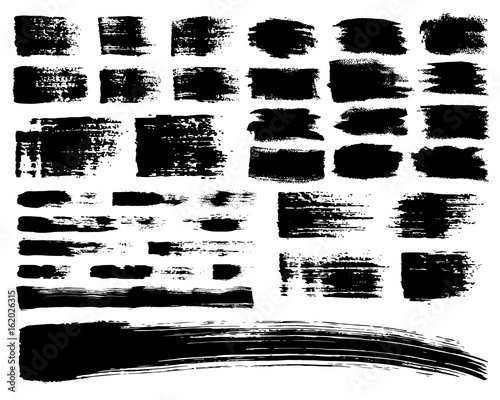 Vector Set of brush acrylic strokes. Black color on white background. Hand painted grange elements. Ink drawing. Dirty artistic design . Place for text, quote, information, company name.